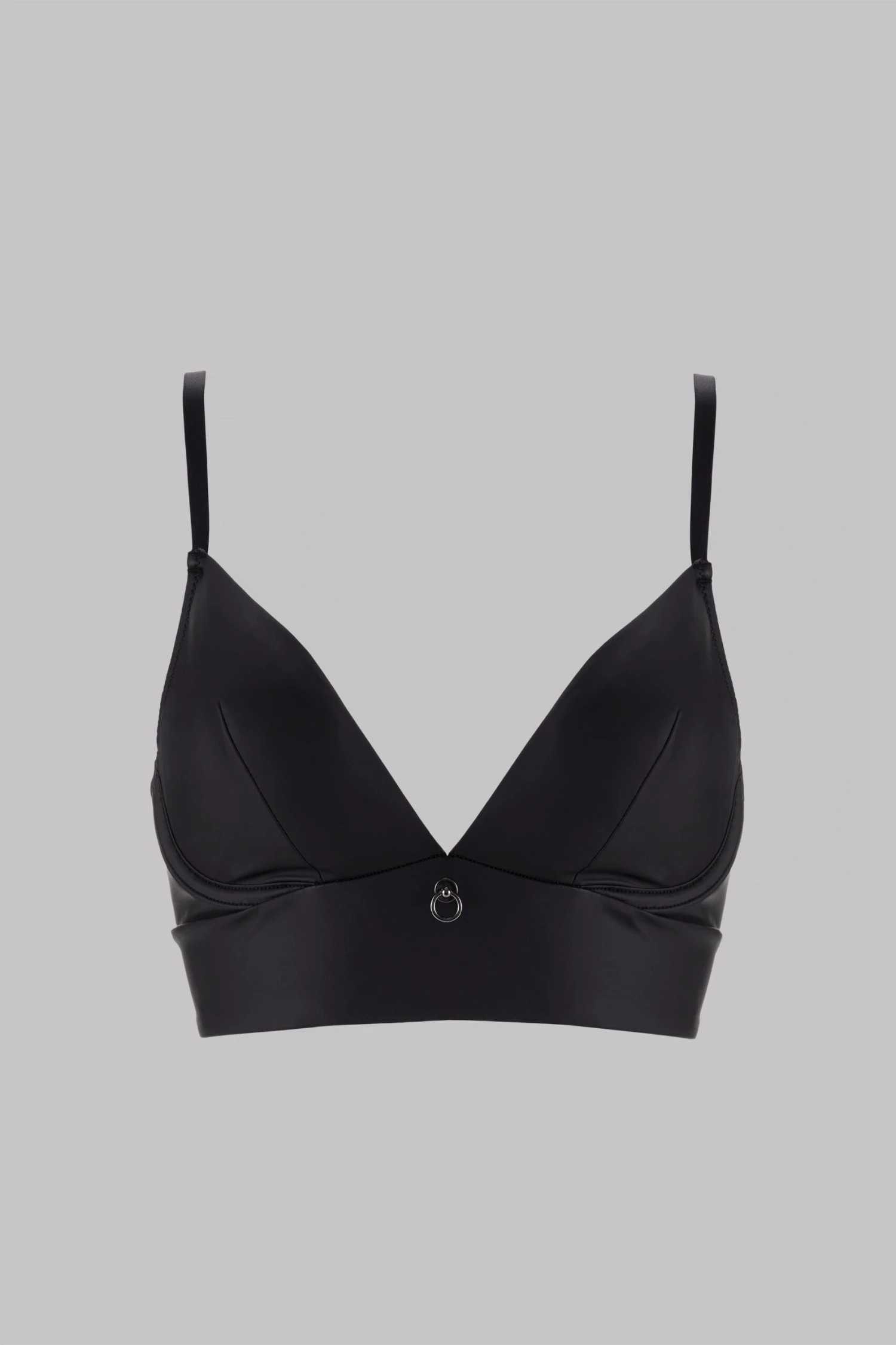 Redessinez votre décolleté avec la brassière Chambre Noire. Confectionnée à partir d’une matière imitation cuir, cette pièce opaque délivre un irrésistible décolleté, grâce à sa coupe triangle.