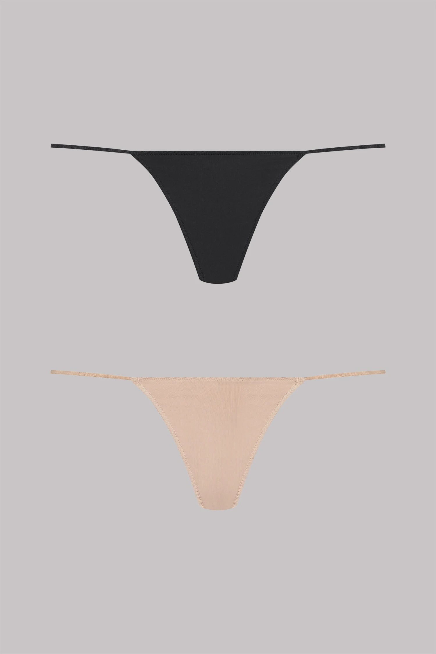 Lot de 2 minis strings noir et chair en microfibre opaque, effet seconde peau, composés de bordures ficelles