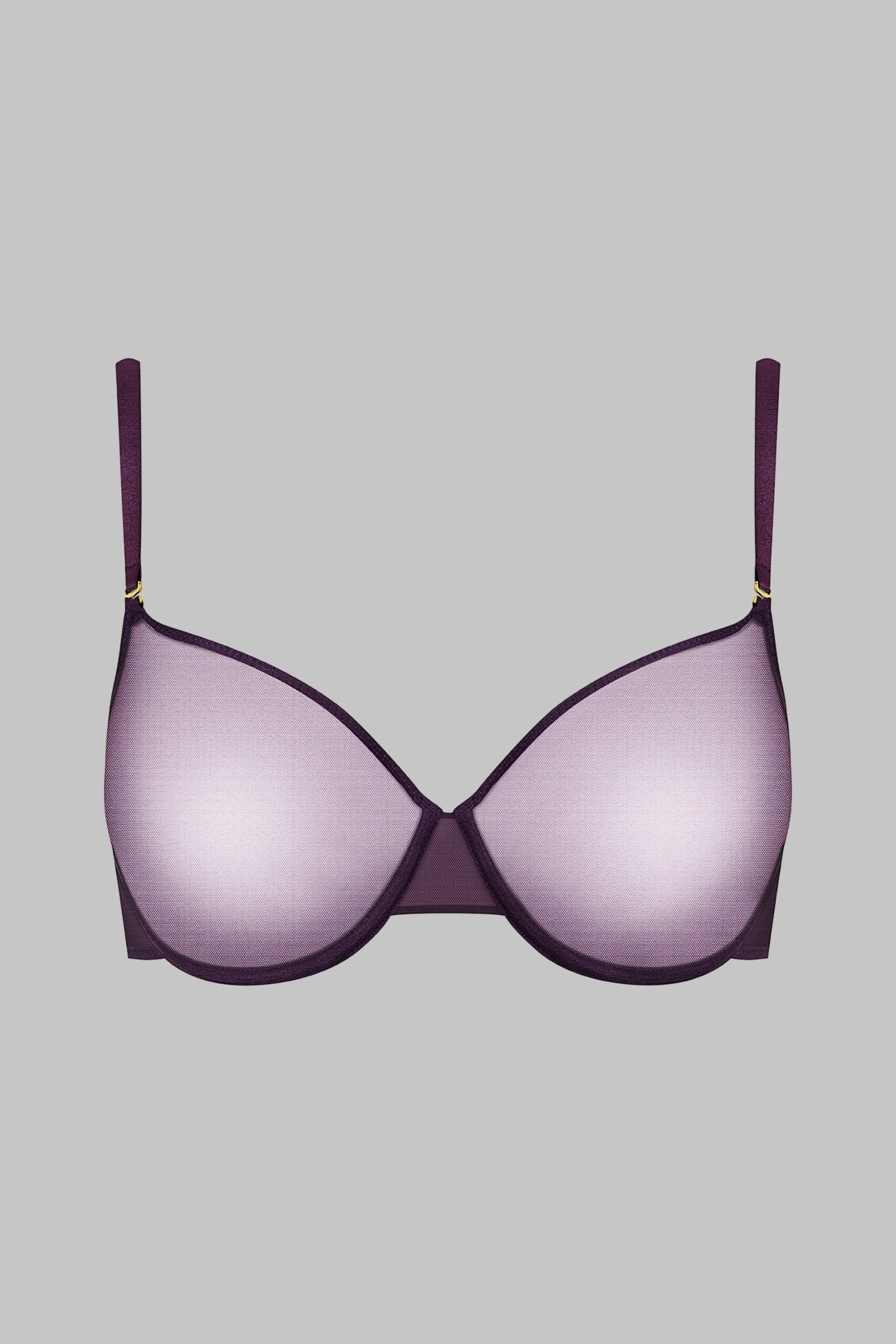 Soutien-gorge corbeille avec armatures en tulle d’une transparence absolue. Bonnets moulés sans coutures qui épousent et galbent parfaitement la poitrine. Fermeture au dos par un agrafage lisse et fin. Bretelles fines, amovibles et réglables.